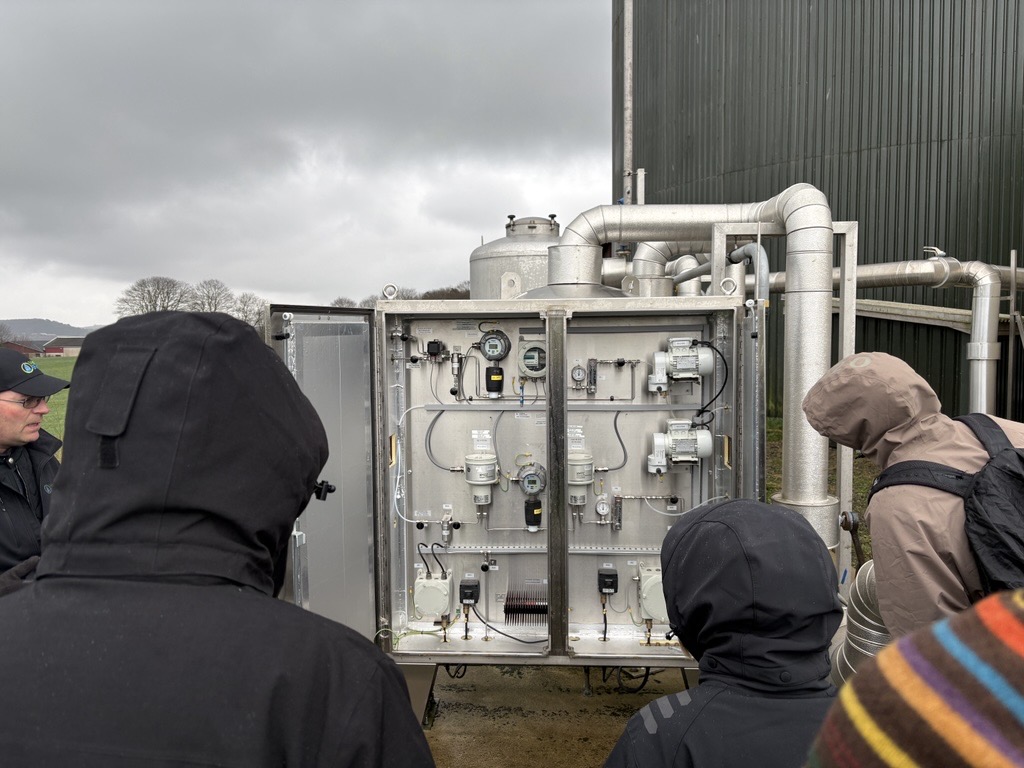 På gården fick deltagarna en inblick i hur biogasproduktion kan integreras med lantbruket. Här rötas inte bara gödsel, utan även restprodukter från jordbruket, såsom agnar. Processen är termofil, och gården arbetar aktivt med att ta tillvara hela resursflödet. Detta görs exempelvis genom gödselseparering där fibern återanvänds som strömedel till djuren.