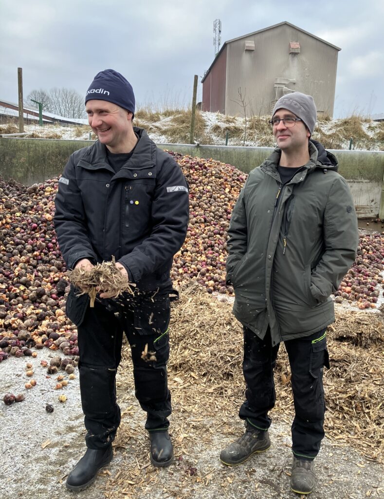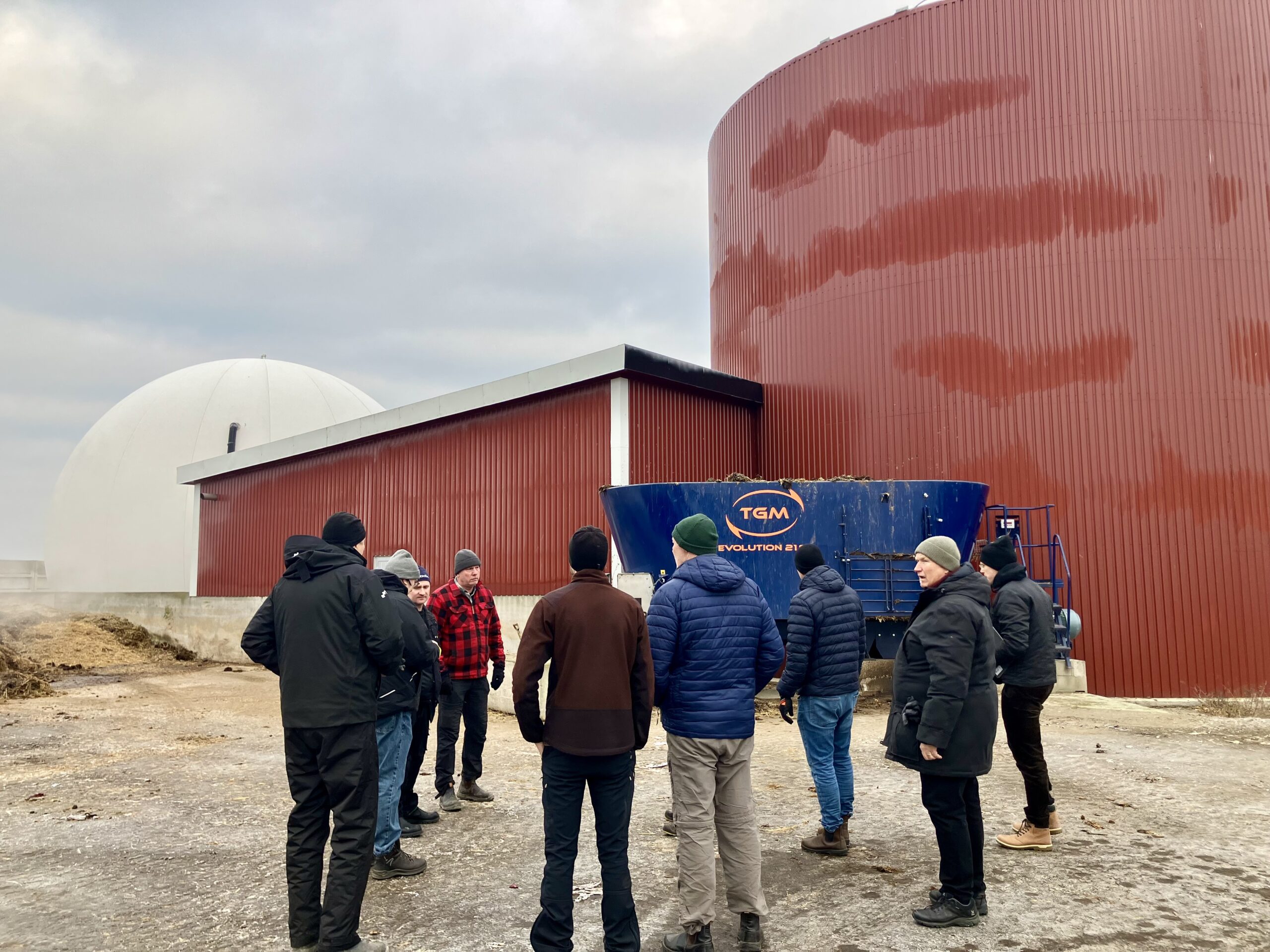 Dagen inleddes med ett studiebesök på Assargården i Glumslöv, strax utanför Landskrona, där bröderna Jonas och Stefan driver mjölkproduktion och växtodling. Extra uppskattat var att även pappa Jan-Eric Andersson deltog – en viktig inspirationskälla bakom gårdens biogassatsning. Assargården samarbetar med Accel AgroBiogas inom Living Lab Skåne och har under 2025 varit engagerad i flera olika försök med nya lantbruksbaserade biogassubstrat.